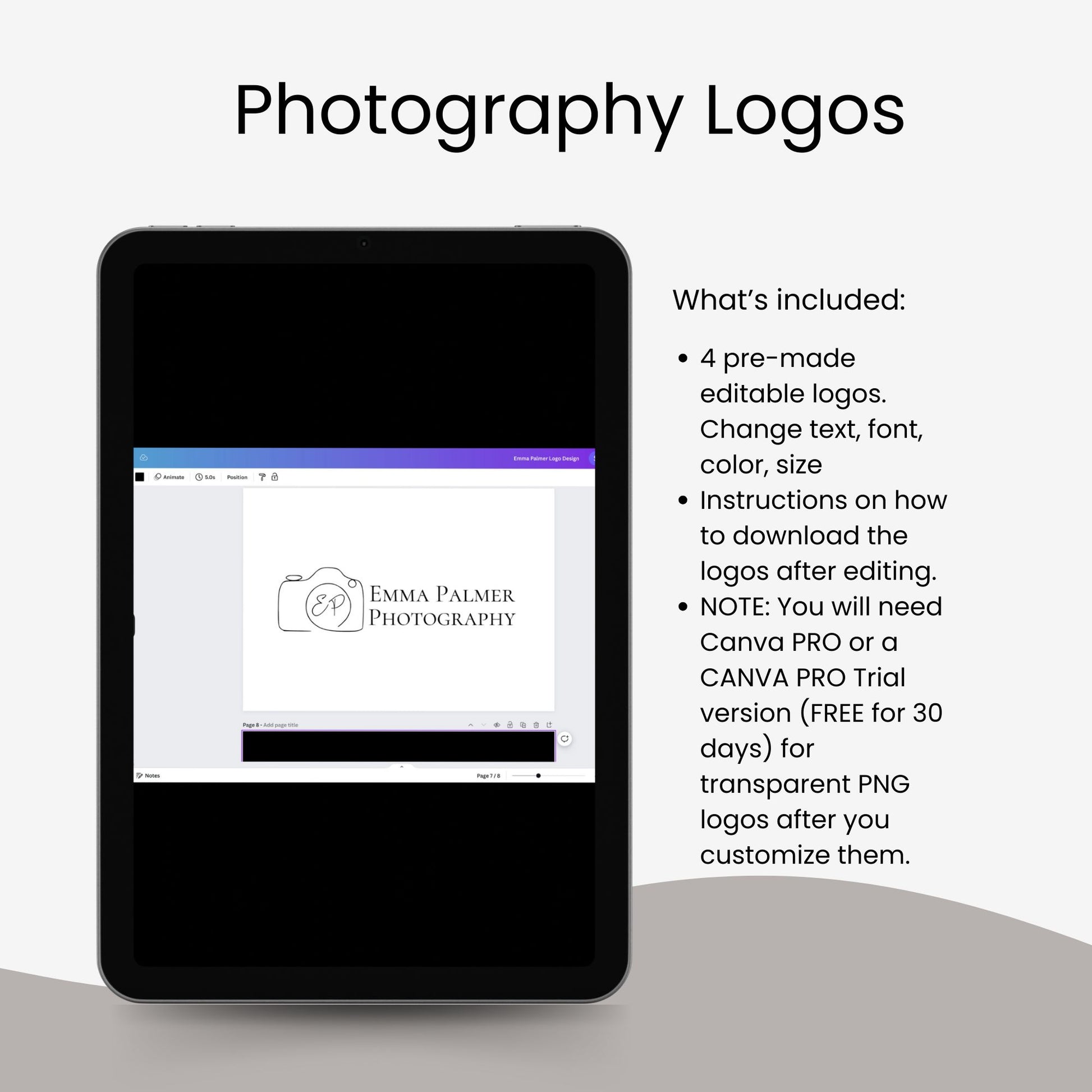 Photographer Logo, Photographer Watermark Design Template, Signature Logo, Watermark Logo, Logo Template, Canva Logo Design Template