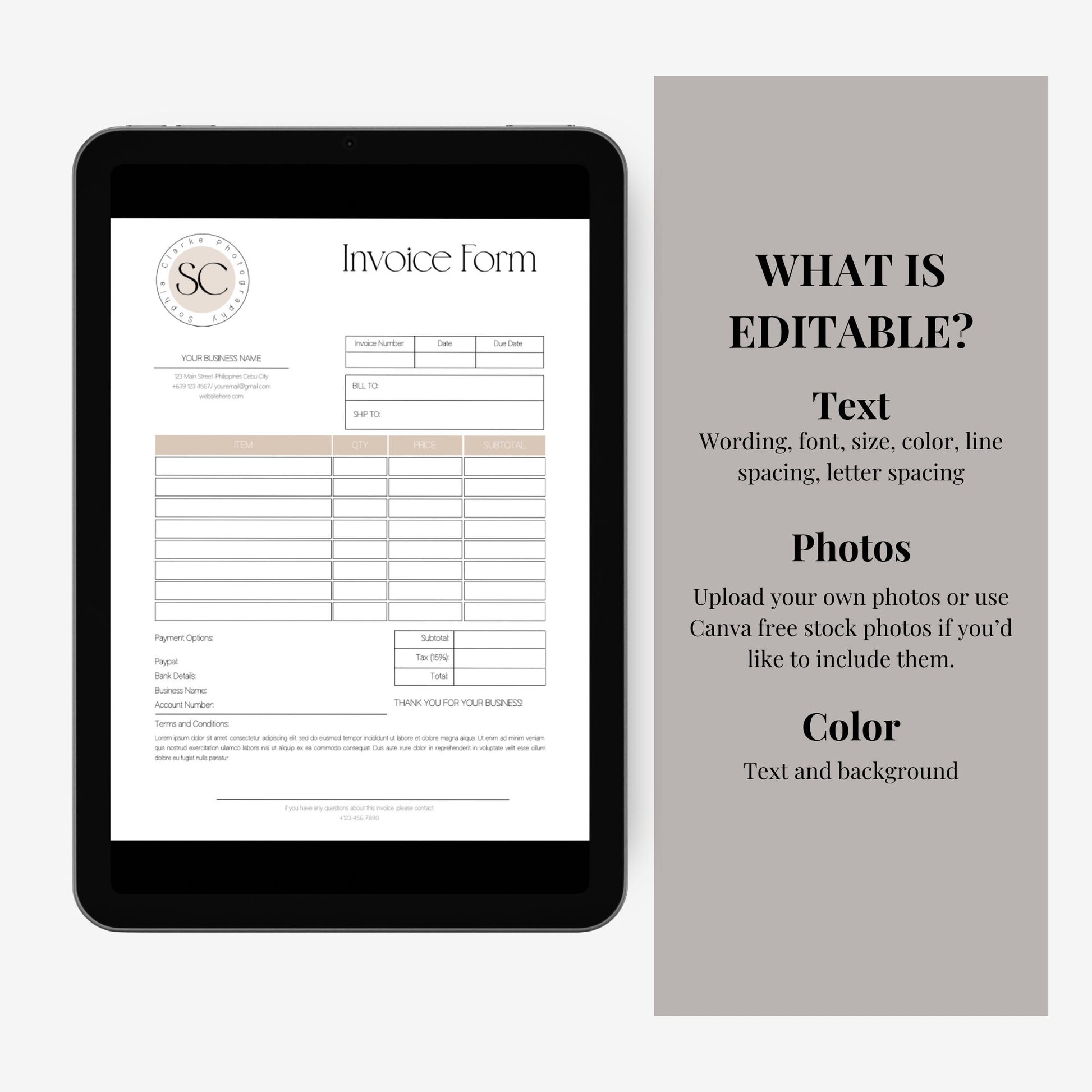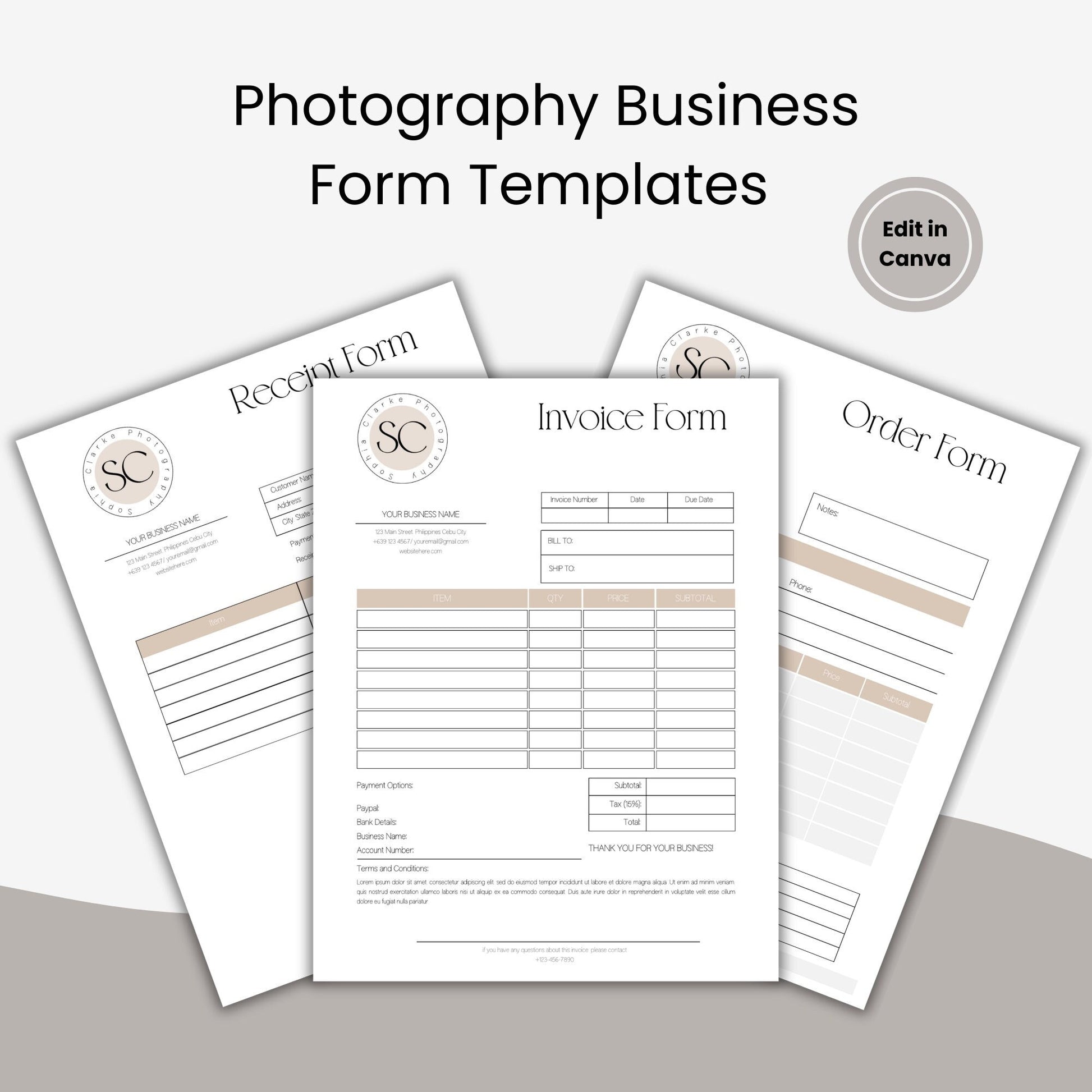 Photography Invoice Form, Business Form Templates, Photography Order Form, Receipt Form, Canva Templates, Invoice Templates