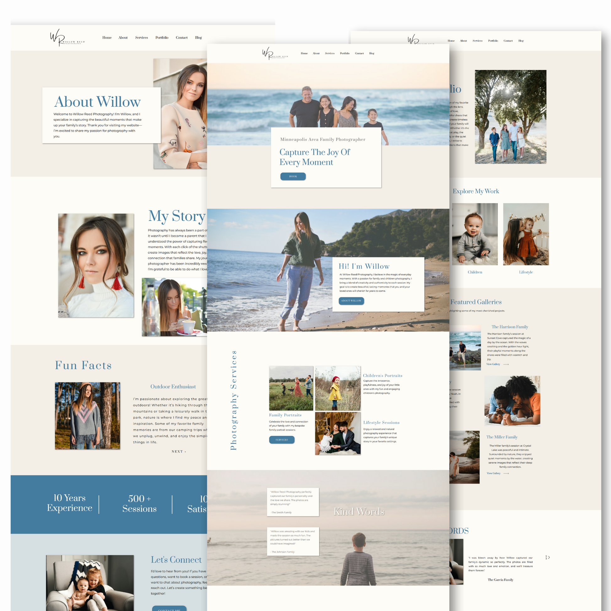 I understand the unique needs of photographers as I'm also a photographer and have crafted this template to help you present your work in the best light. Whether you specialize in weddings, portraits, newborns, or any other type of photography, my Showit template provides a professional online presence that will set you apart from the competition.