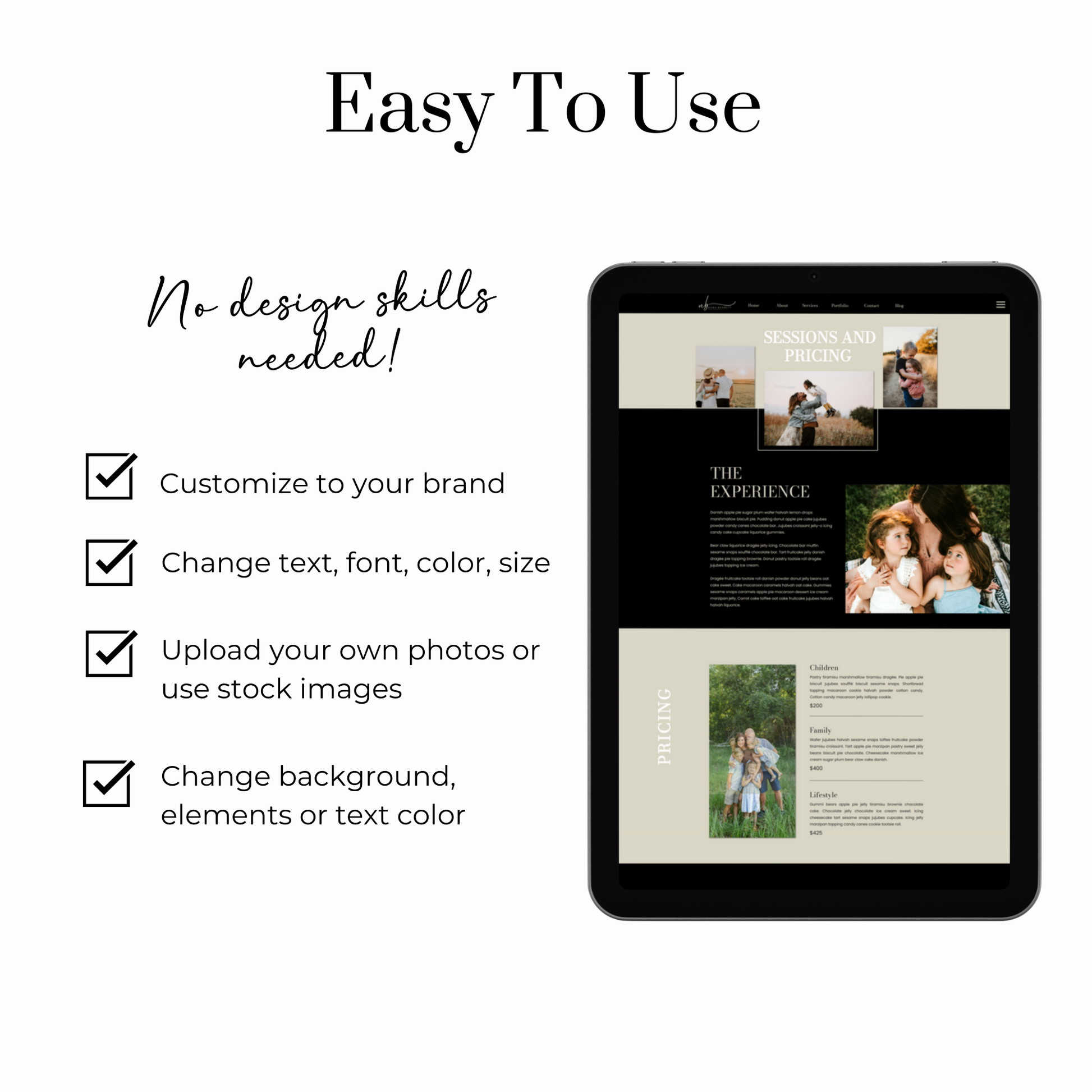 Beautiful Design: Clean, modern, and elegant layout that highlights your photography.