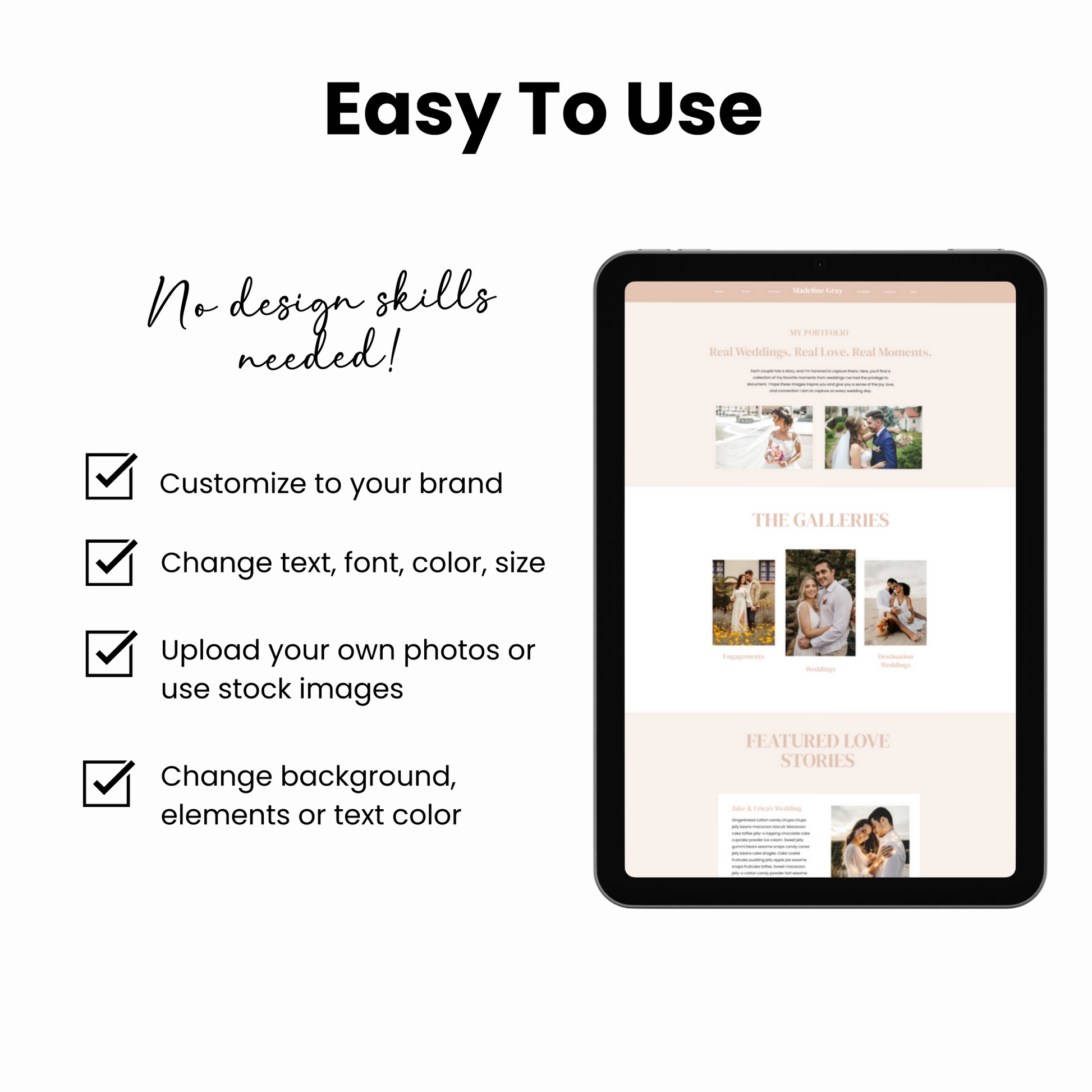 Beautiful Design: Clean, modern, and elegant layout that highlights your photography.